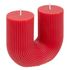 Informations Techniques : Dimensions : L. 11 x l. 5,1 x H. 12 cm Matière : Paraffine Spécificités : Design & Tendance Bougie striée sans parfum Avec 2 mèches Design en forme de U Durée de combustion : +/- 20 heures Poids : 0,4 Kg Couleur : Rouge