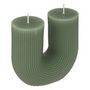 Informations Techniques : Dimensions : L. 11 x l. 5,1 x H. 12 cm Matières : Paraffine & Coton Spécificités : Design & Tendance Bougie striée Design en forme de U 2 mèches Durée de combustion : +/- 20 heures Capacité : 400 g Poids : 0,4 Kg Couleur : Vert Céladon