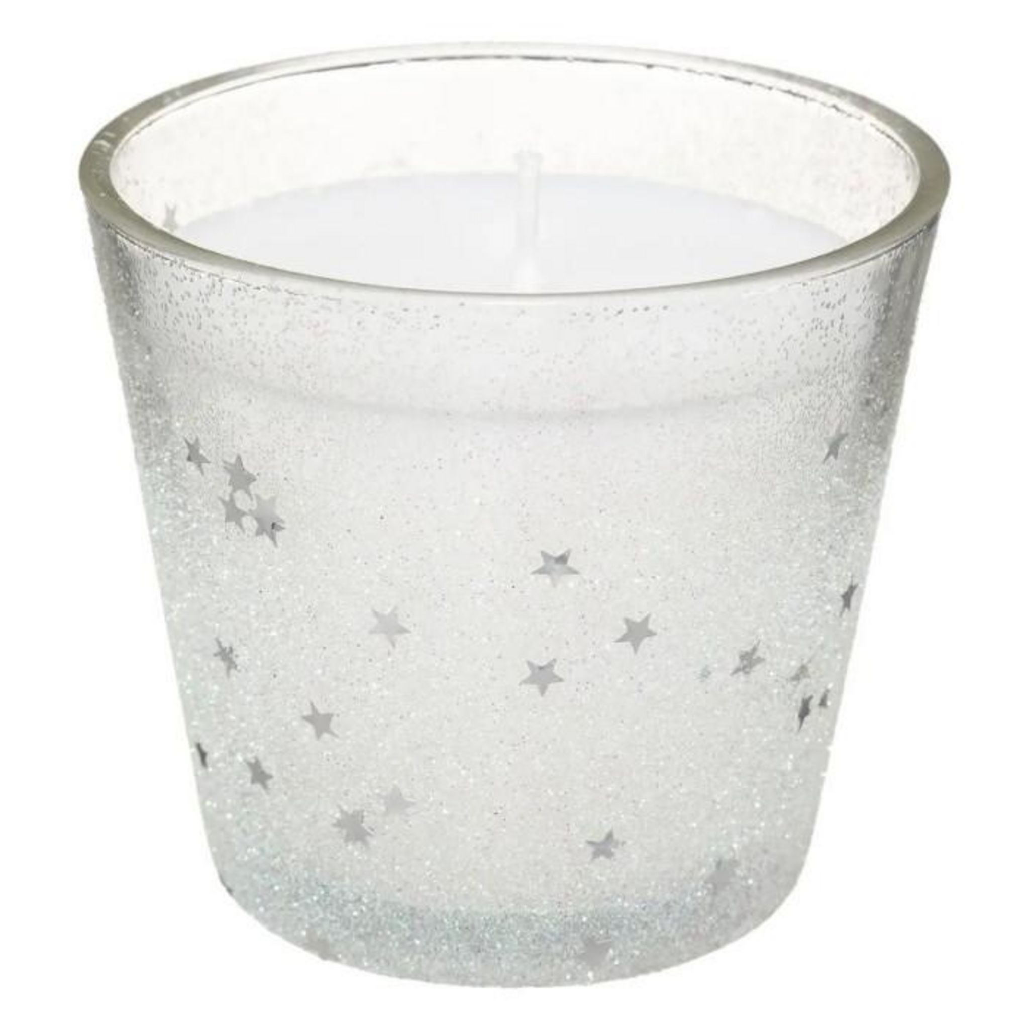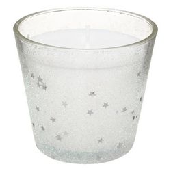 Informations Techniques : Dimensions : D. 9 x H. 8,3 cm Matières : Verre & Paraffine Spécificités : Pratique & Utile Bougie Déco Forme Ronde Avec Paillettes Design Étoiles Durée de Combustion : 30 heures Contenance : 90 g Type de Mèche : Coton Combustion Interne Poids : 0,405 kg Couleur : Blanc