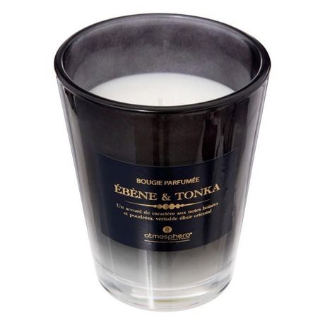 Informations Techniques : Dimensions : D. 10,15 x H. 12,4 cm Matières : Verre & Paraffine Spécificités : Déco & Utile Bougie parfumée Contenant en verre teinté Senteurs : Ébène & Tonka Contenance : 270 g Durée de diffusion : +/- 38 heures Poids : 0,72 kg Couleur : Noir