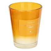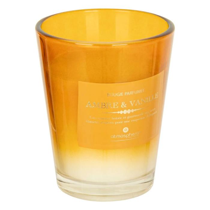 Informations Techniques : Dimensions : D. 10,15 x H. 12,4 cm Matières : Verre & Paraffine Spécificités : Déco & Utile Bougie parfumée Contenant en verre teinté Senteurs : Vanille & Ambre Contenance : 270 g Durée de diffusion : +/- 38 heures Poids : 0,72 kg Couleur : Ambre