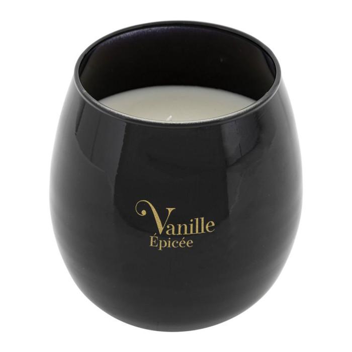 Informations Techniques : Dimensions : D. 12 x H. 11,5 cm Matières : Verre, Paraffine & Coton Spécificités : Pratique & Design Parfum créé en France Senteur : Vanille épicée Contenance : 400 g Poids : 0.638 kg Couleur : Noir