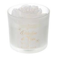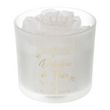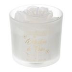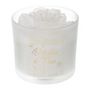 Informations Techniques : Dimensions : D. 8 cm Matières : Paraffine, Verre, & Coton Spécificités : Pratique & Déco Bougie parfumée déco Design fleur Forme ronde Senteur : Citrus Contenance : 140 g Poids : 0,372 kg Couleur : Blanc