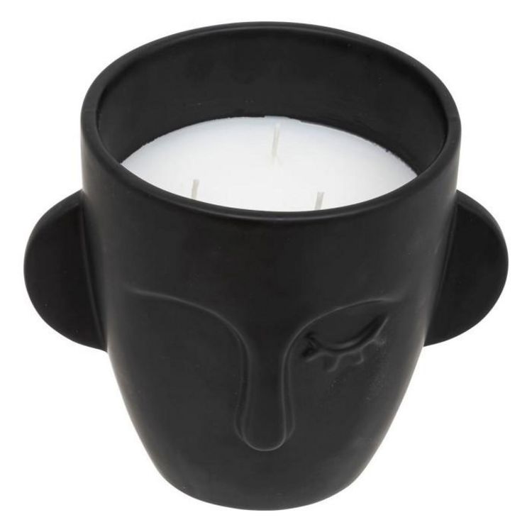 Informations Techniques : Dimensions : D. 17,5 x H. 14,5 cm Matières : Grès & Paraffine Spécificités : Déco & Originale Bougie parfumée Contenant design visage Senteur : Tonka Contenance : 520 g Durée de diffusion : +/- 25 heures Poids : 1,14 kg Couleur : Noir