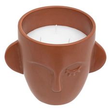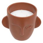 Informations Techniques : Dimensions : D. 17,5 x H. 14,5 cm Matières : Grès & Paraffine Spécificités : Déco & Originale Bougie parfumée Contenant design visage Senteur : Vanille Contenance : 520 g Durée de diffusion : +/- 25 heures Poids : 1,14 kg Couleur : Terracotta
