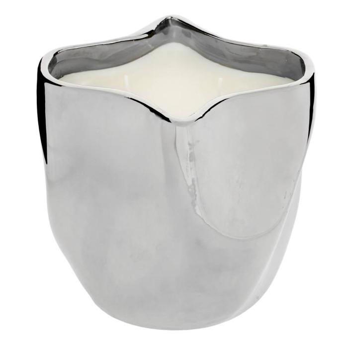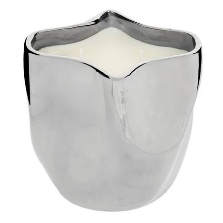 Informations Techniques : Dimensions : L. 14,7 x l. 13,8 x H. 15 cm Matières : Grès, Paraffine & Cire de Palme Spécificités : Déco & Chic Bougie parfumée design Avec 2 mèches Senteur : Ylang-ylang Contenance : 985 g Poids : 1,56 kg Couleur : Argent