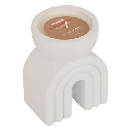 Informations Techniques : Dimensions : L. 9 x l. 8 x H. 13 cm Matière : Ciment Spécificités : Déco & Design Bougie parfumée En forme d'arche Pied sculpté Mèche en coton Finition brute Senteur : Fleur d'Oranger Contenance : 70 g Poids : 0,75 kg Couleur : Blanc