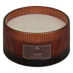 Informations Techniques : Dimensions : D. 15,1 x H. 8,1 cm Matières : Paraffine & Verre Spécificités : Déco & Élégante Bougie parfumée ronde Avec 3 mèches en coton Contenant en verre strié Parfum crée en France Senteur : Figue noire Durée de combustion : +/- 35 heures Contenance : 635 g Poids : 1,47