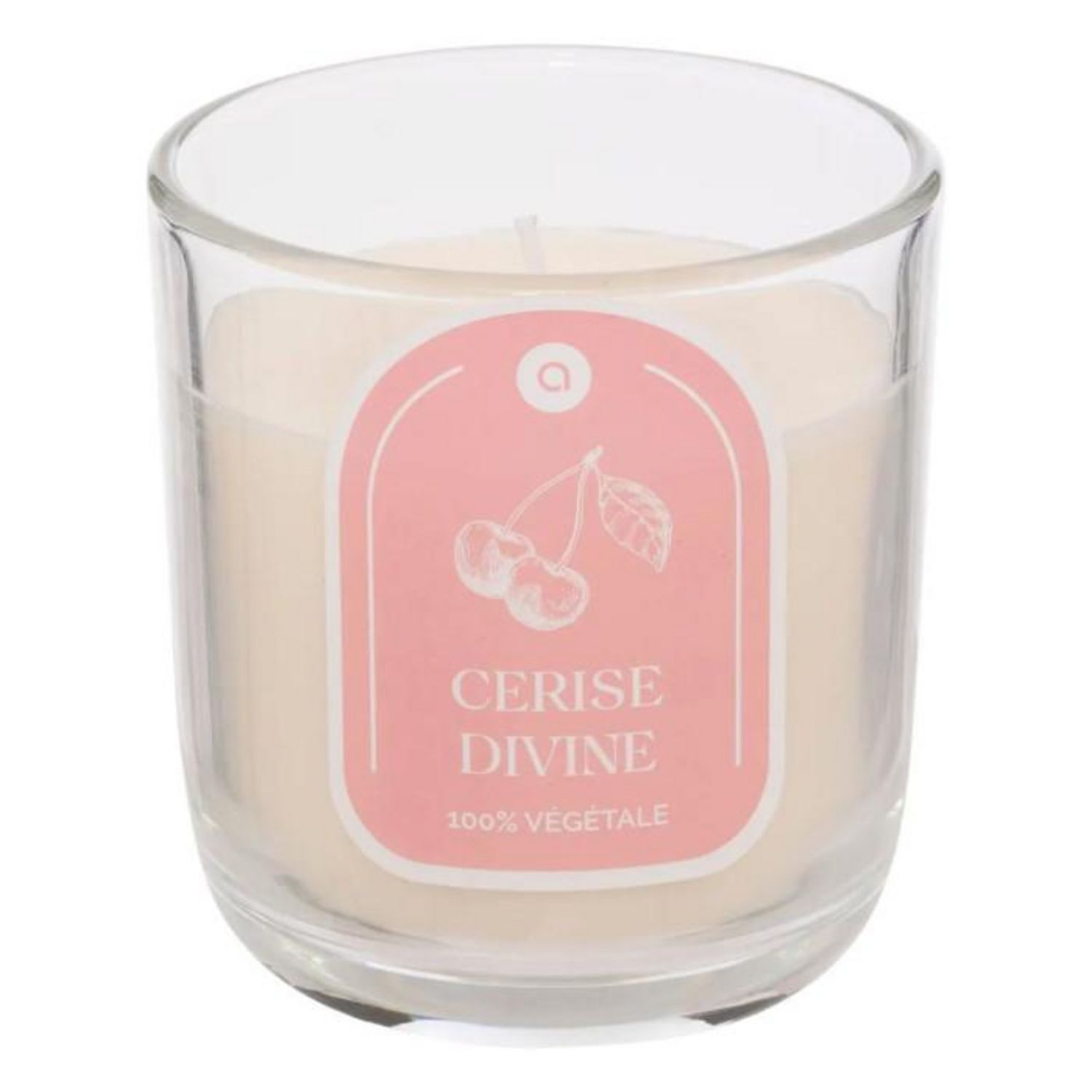Informations Techniques : Dimensions : D. 8,3 x H. 9 cm Matières : Verre & Cire Végétale Spécificités : Déco & Utile Bougie parfumée Senteur : Cerise divine Capacité : 210 g Poids : 0,47 kg Couleur : Blanc