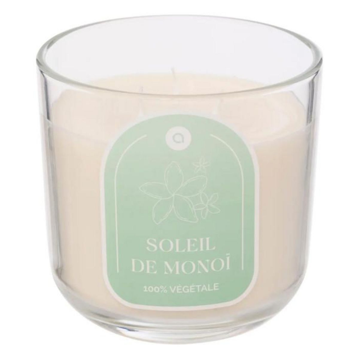 Informations Techniques : Dimensions : D. 12 cm Matières : Verre & Cire Végétale Spécificités : Déco & Utile Bougie parfumée Avec 3 mèches Senteur : Soleil de monoï Capacité : 610 g Poids : 1,3 kg Couleur : Blanc