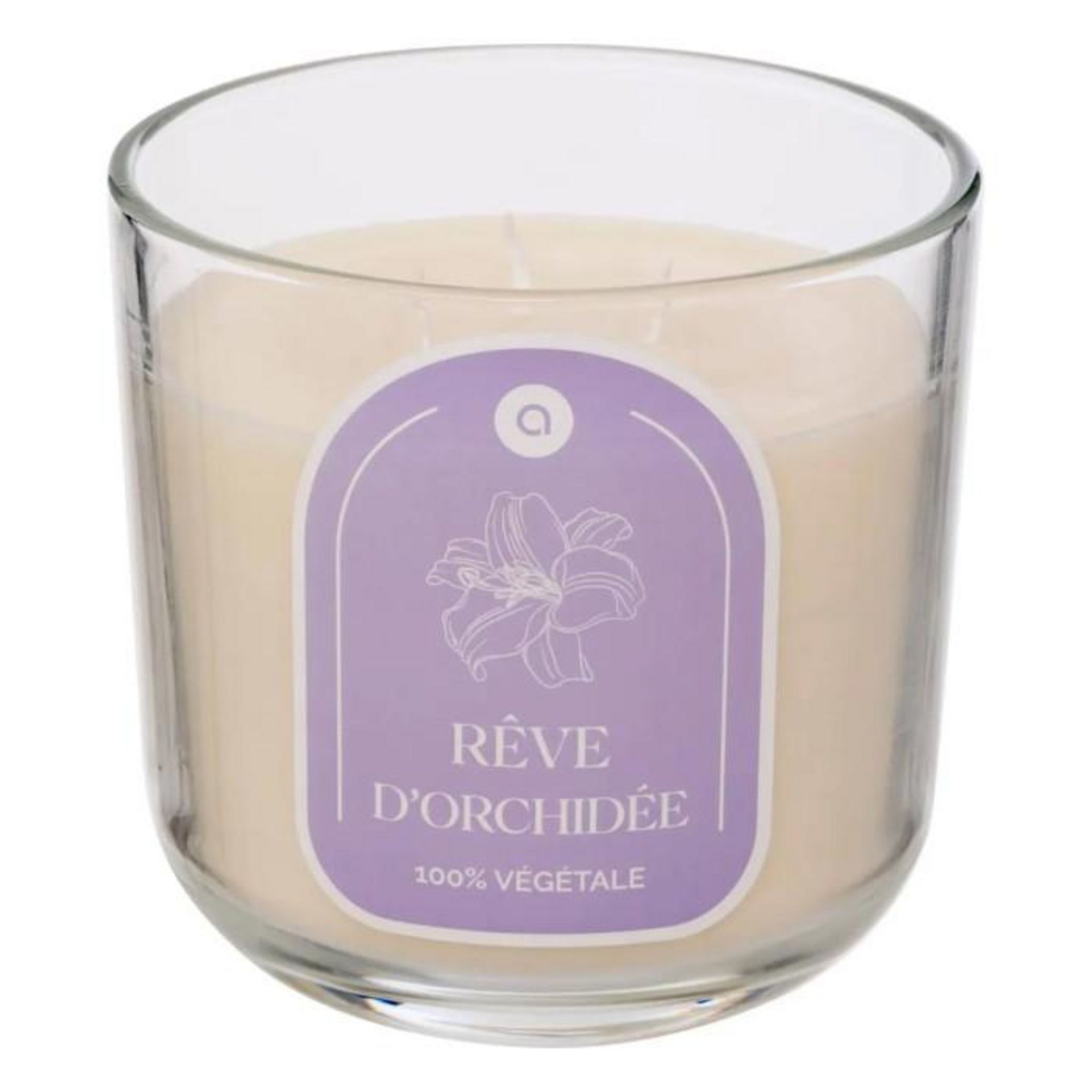 Informations Techniques : Dimensions : D. 12 cm Matières : Verre & Cire Végétale Spécificités : Déco & Utile Bougie parfumée Avec 3 mèches Senteur : Rêve d'orchidée Capacité : 610 g Poids : 1,3 kg Couleur : Blanc
