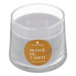 Informations Techniques : Dimensions : D. 10 x H. 8 cm Matières : Paraffine, Cire (Palme) & Verre Spécificités : Déco & Utile Forme ronde Senteur : Monoï de tahiti Type de fragrance : Sucrée Durée de combustion : 22 heures Contenance : 300 g Poids : 0,47 kg Couleur : Bleu Orage