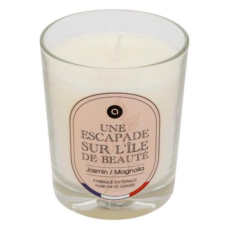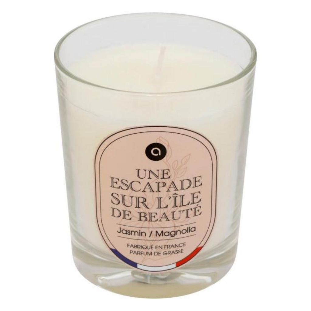 Informations Techniques : Dimensions : D. 7,5 x H. 9,1 cm Matières : Paraffine & Verre Spécificités : Envoûtante & Utile Bougie parfumée déco Avec une mèche Pot en verre Parfum de Grasse créé en France Sans huile de palme Sans perturbateurs endocriniens Senteur : Jasmin et Magnolia Durée de combust