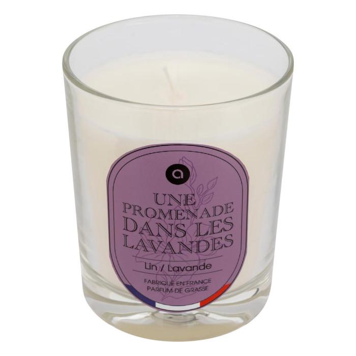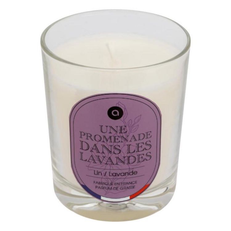 Informations Techniques : Dimensions : D. 7,5 x H. 9,1 cm Matières : Paraffine & Verre Spécificités : Envoûtante & Utile Bougie parfumée déco Avec une mèche Pot en verre Parfum de Grasse créé en France Sans huile de palme Sans perturbateurs endocriniens Senteur : Lin et lavande Durée de combustion
