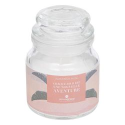 Informations Techniques : Dimensions : D. 6,2 x H. 8,7 cm Matières : Verre & Cire Spécificités : Pratique & Utile Bougie Parfumée Forme Ronde Senteur : Agrumes & Musc Inscription Chaque Jour est une Nouvelle Aventure % de Parfum : 3% Durée de Combustion : 12 heures Contenance : 70 g Poids : 0,225