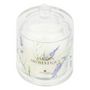 Informations Techniques : Dimensions : D. 10,8 x H. 14 cm Matières : Verre & Paraffine Spécificités : Déco & Utile Bougie parfumée ronde Avec couvercle cloche Senteurs : Lavande & Camomille Contenance : 240 g Durée de combustion : +/- 40 heures Poids : 1,2 kg Couleur : Transparent & Viole