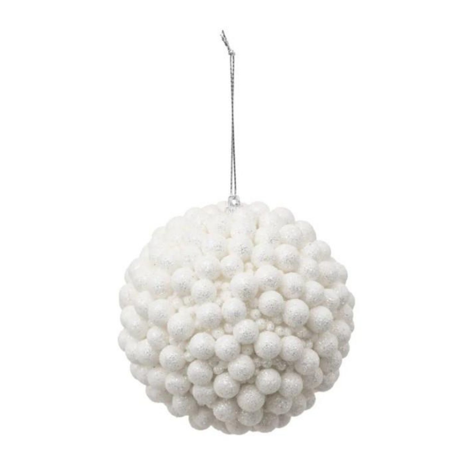 Informations Techniques : Dimensions : D. 10 cm Matière : Polystyrène Spécificités : Pratique & Tendance Boule de Noël déco Design billes Poids : 0,01 kg Couleur : Blanc