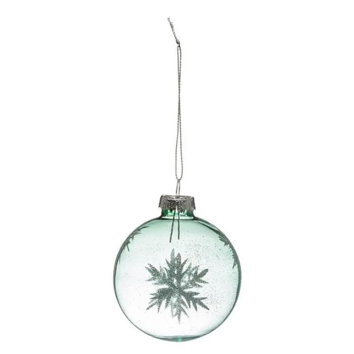 Informations Techniques : Dimensions : D. 7 cm Matière : Verre Spécificités : Pratique & Utile Boule de Noël A Suspendre Forme Ronde Avec Paillettes Design Flocon Poids : 0,018 kg Couleur : Vert