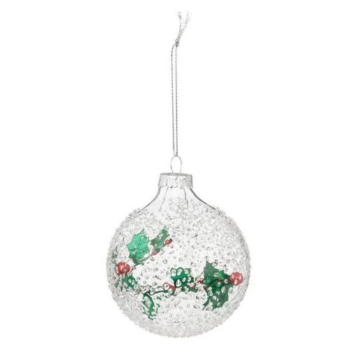 Boule de Noël en Verre Houx 8cm Transparent