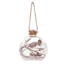 Informations Techniques : Dimensions : D. 9 cm Matière : Verre Spécificités : Pratique & Utile Boule de Noël Forme Ronde Design Fiole Intérieur Branches avec Neige Poids : 0,05 kg Couleur : Naturel