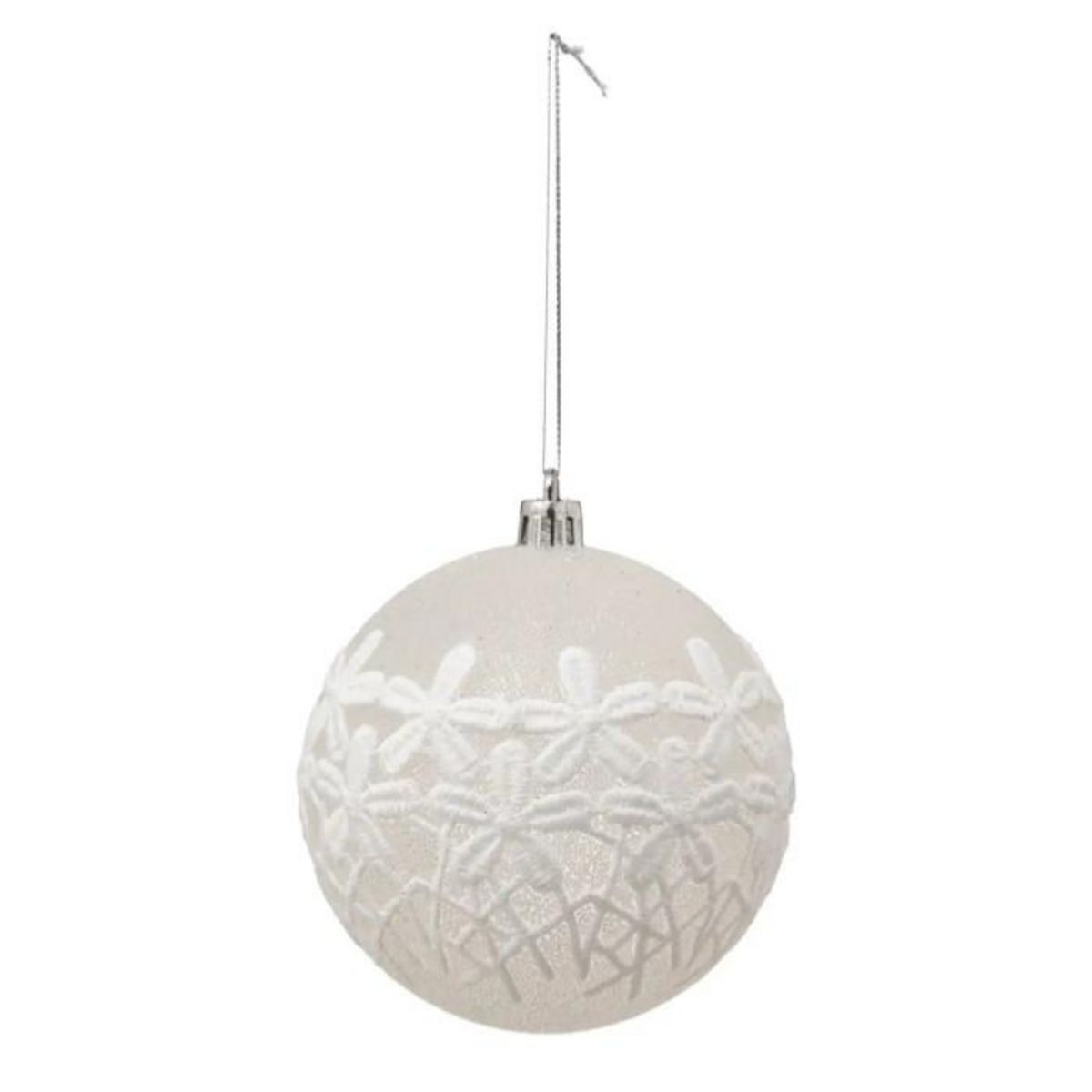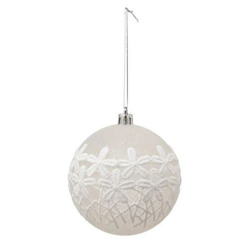 Boule de Noël Fleur en Dentelle 8cm Blanc