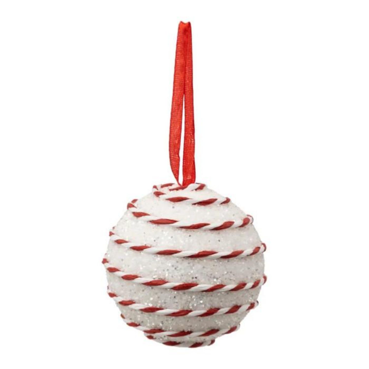 Boule de Noël Pailleté Cordon 8cm Blanc