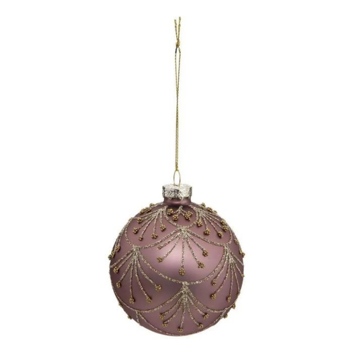 Informations Techniques : Dimensions : D. 8 cm Matière : Verre Spécificités : Pratique & Utile Boule de Noël Forme Ronde Design Perles Poids : 0,023 kg Couleur : Rose & Or
