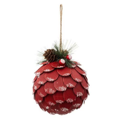 Informations Techniques : Dimensions : D. 10 x H. 12 cm Matière : Polystyrène Spécificités : Pratique & Tendance Boule de Noël déco Motif pomme de pin enneigée Effet écailles en 3D Forme ronde Poids : 0,03 kg Couleur : Rouge