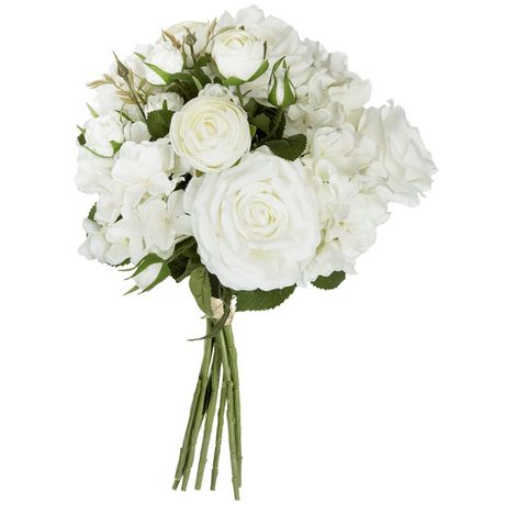 Bouquet de fleurs idéal comme décoration de mariage.FICHE TECHNIQUE- Structure du bouquet en fer.- Revêtement en polyester et polyéthylène.CARACTERISTIQUES TECHNIQUES- Dimensions : H. 50 cm.- Poids : 0,27 kg.