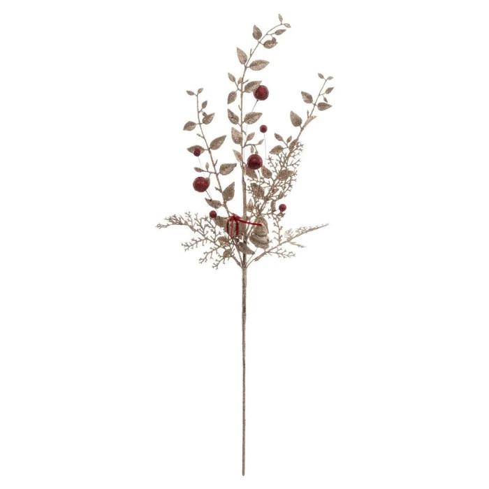 Informations Techniques : Dimensions : L. 24 x l. 3 x H. 75 cm Matières : Polyéthylène & Métal Spécificités : Pratique & Utile Branche de Feuilles Design Baies & Cadeaux Avec Paillettes Poids : 0,053 kg Couleur : Or & Rouge