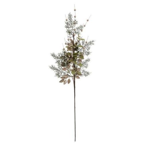 Informations Techniques : Dimensions : L. 23 x l. 7 x H. 75 cm Matières : Polyéthylène & Métal Spécificités : Pratique & Utile Branche de Feuilles Avec Paillettes Poids : 0,066 kg Couleur : Vert, Beige & Champagne