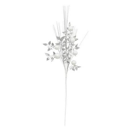 Branche Déco de Noël Feuilles & Boules 75cm Argent
