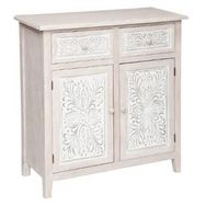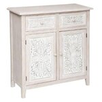 Informations Techniques : Dimensions : L. 80 x l. 34,5 x H. 85 cm Matières : MDF & Bois (Paulownia) Spécificités : Tendance & Moderne Buffet design 2 Porte & 2 Tiroirs Motif Embossé Effet Blanchi Poids : 16 kg Couleur : Naturel