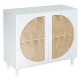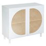 Informations Techniques : Dimensions : L. 94 x l. 40 x H. 86 cm Matières : Portes : MDF & Rotin Piètement : Bois (Héva) Spécificités : Épuré & Esthétique Buffet sur pied Avec 2 portes Détails cannage en rotin Étagères intérieures À monter soi-même Poids : 26,24 kg Couleur : Blanc