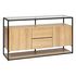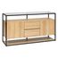 Le buffet 2 portes Aldea séduira les inconditionnels d'un style sobre et épuré. Conçu dans un mélange d'acier teinté et de MDF au fini effet chêne, il offre un plateau supérieur en verre qui vous permettra d'exposer des objets déco et il dispose de deux placards ainsi que de deux tiroirs. Idéal comm