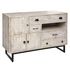 De design rustique, ce buffet apportera une touche rétro à la décoration de votre séjour. Pratiques et esthétiques, ses trois portes et ses quatre tiroirs vous offriront des rangements discrets alors que sa niche de rangement ouverte vous permettra d'exposer vos objets de déco. Sa structure en bois de manguier contraste joliment avec ses détails de façades.