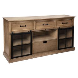 Nous vous proposons le buffet Danik, pour décorer votre intérieur. Très pratique, il est composé de 4 tiroirs, d'1 niche de rangement et 2 portes coulissantes en fer et verre. Son style champêtre vous permettra de l'associer facilement avec tous les types de décorations. On adore l'association du bois de sapin, du verre trempé et du fer des charnière des portes.