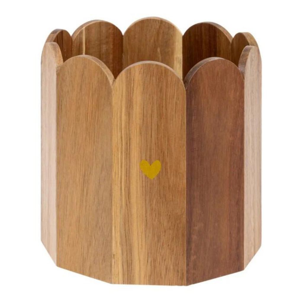 Informations Techniques : Dimensions : D. 18 x H. 18,5 cm Matière : Bois (Acacia) Spécificités : Pratique & Tendance Cache-pot déco Design pétales de fleur Style romantique Usage intérieur Eau déconseillée Poids : 0,5 kg Couleur : Marron