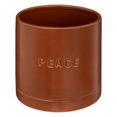 Informations Techniques : Dimensions : D. 14 cm Matière : Dolomite Spécificités : Tendance & Moderne Cache-pot déco Forme ronde Inscription Peace Poids : 0,65 kg Couleur : Caramel