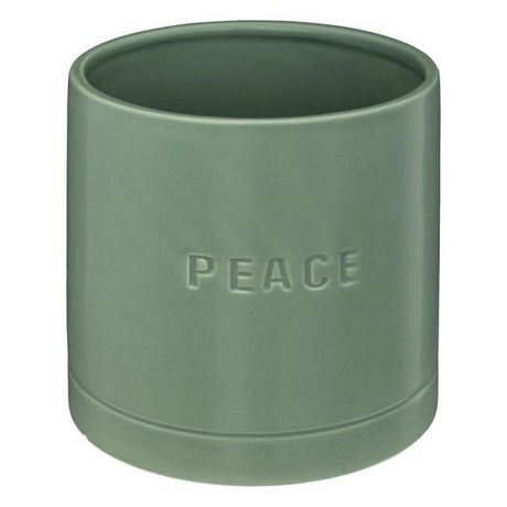 Informations Techniques : Dimensions : D. 13,7 x H. 14 cm Matière : Dolomite Spécificités : Tendance & Moderne Cache-pot déco Forme ronde Inscription Peace Poids : 0,65 kg Couleur : Vert Jade
