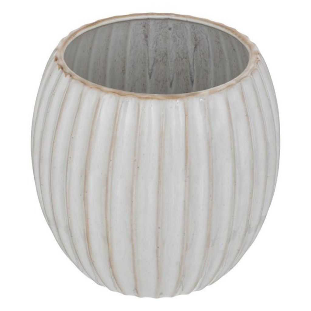 Informations Techniques : Dimensions : D. 19 x P. 18 cm Matière : Grès Spécificités : Pratique & Déco Cache-pot rainuré Étanche Poids : 1,4 kg Couleur : Beige
