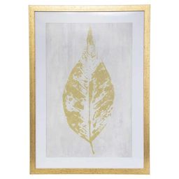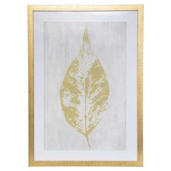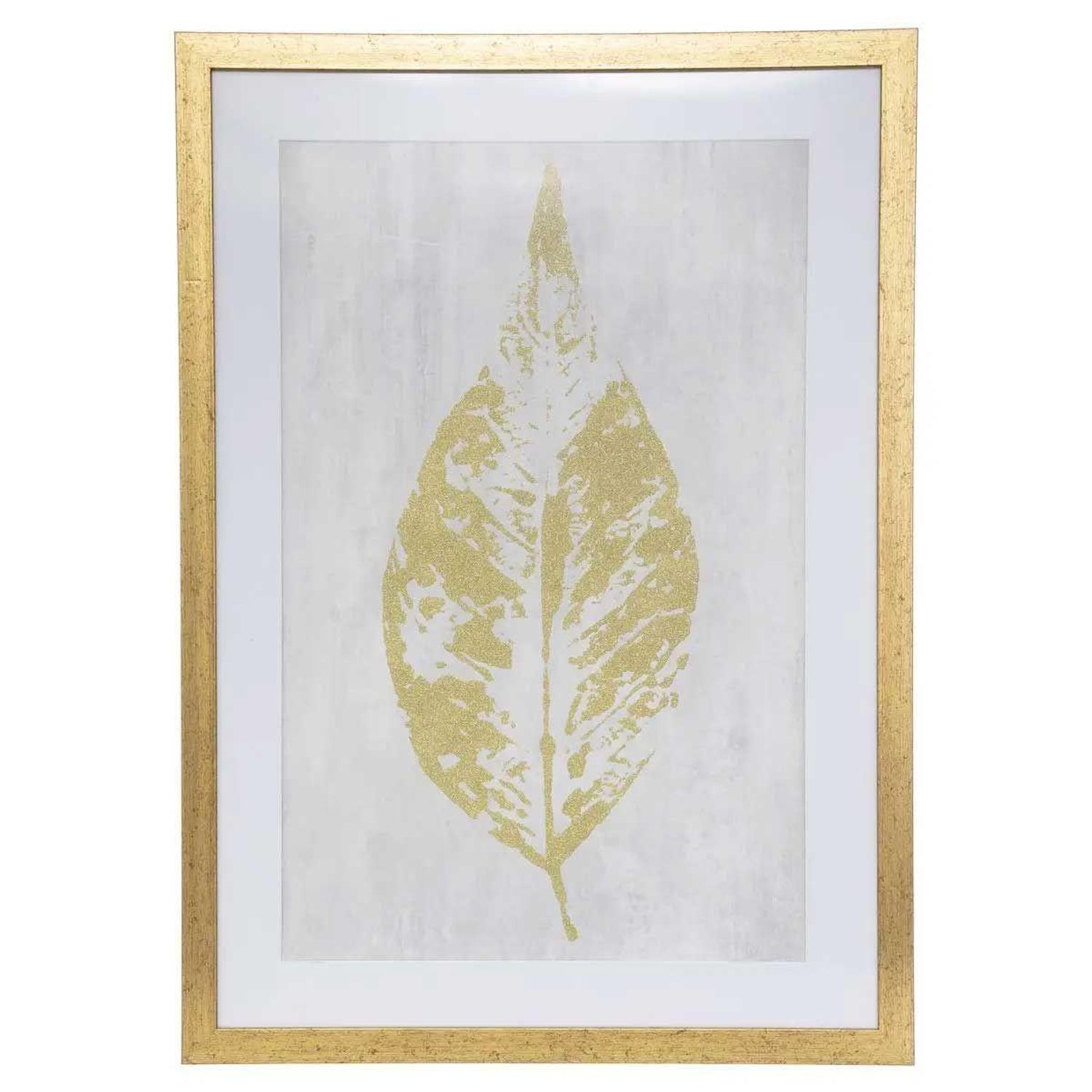 Cadre Déco Feuille 50x70cm Or & Blanc