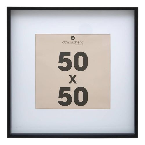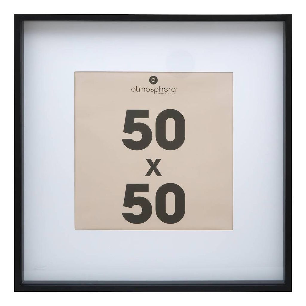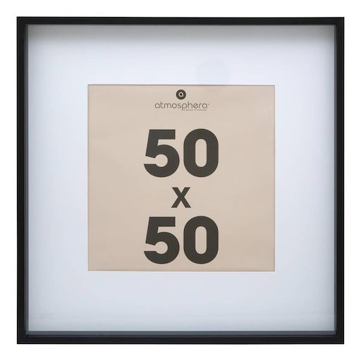 Informations Techniques : Dimensions : L. 51,7 x l. 3,5 x H. 51,7 cm Matières : MDF & Verre Spécificités : Tendance & Déco Cadre photo à suspendre Pour format photo 50x50 cm Passe-partout inclus Certifié FSC Poids : 1,88 kg Couleur : Noir