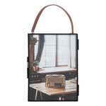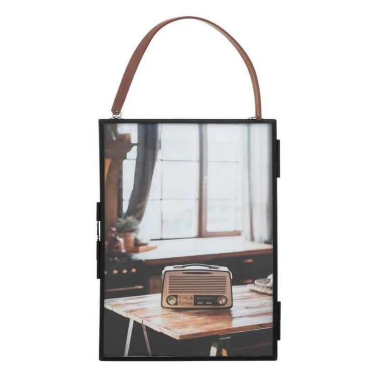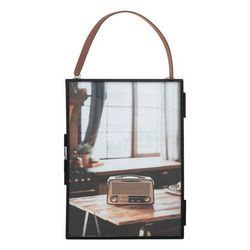 Informations Techniques : Dimensions : L. 14 x l. 0,7 x H. 28 cm Cadre : H. 19 cm Ruban : H. 9 cm Matières : Métal & Verre Spécificités : Rétro & Pratique Cadre photo à suspendre Avec anse imitation cuir Finition mate Possibilité de mettre une photo de chaque côté Convient pour des photos au format