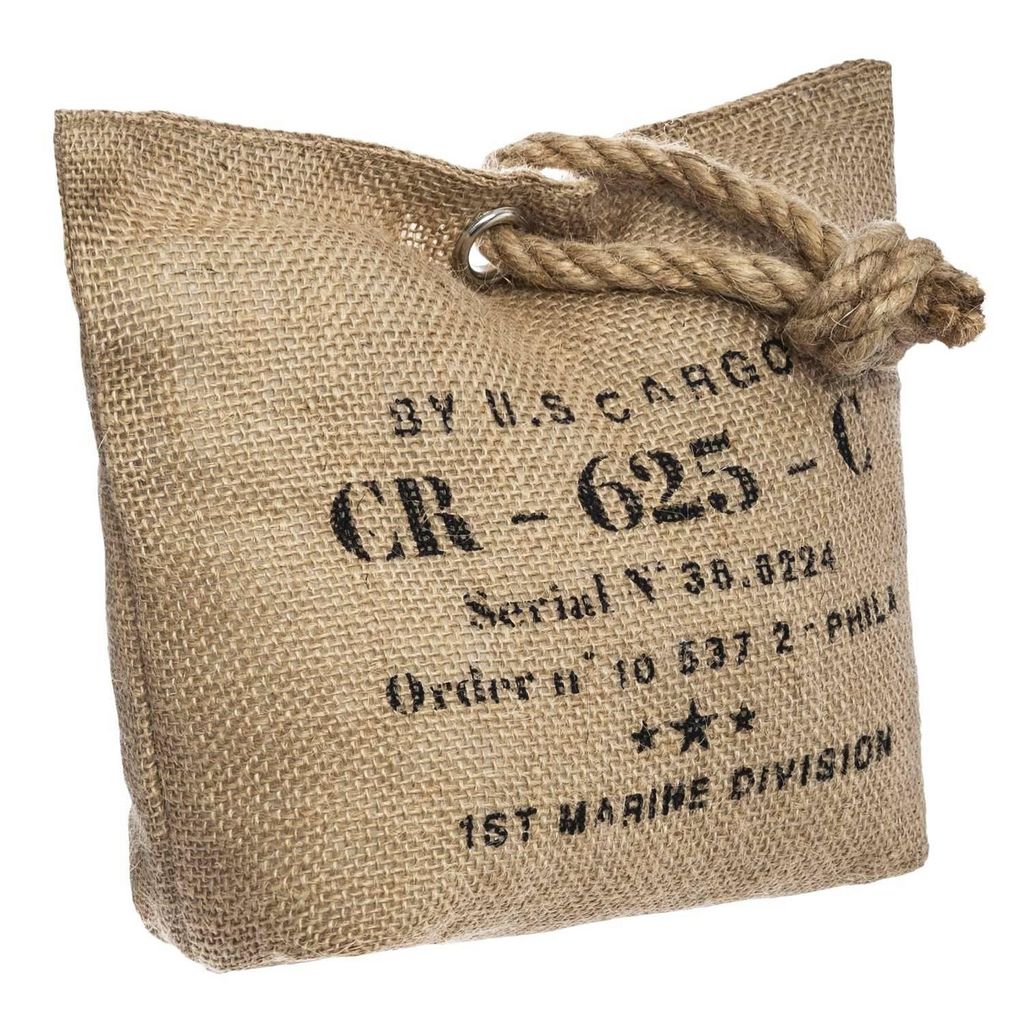 Idéal pour les grands espaces à l'esprit loft, ce cale porte est composé d'une enveloppe en jute végétale, l'ensemble étant lesté par du sable. Imprimé et évoquant les anciens sacs de transport, il est muni d'une petite poignée qui vous permettra de le déplacer facilement ! Il se mariera très bien a