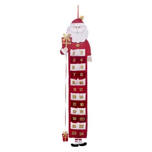 Informations Techniques : Dimensions : L. 23 x l. 3,3 x H. 90 cm Matière : Polyester Spécificités : Pratique & Utile Calendrier de l'Avent Mural Design Père Noël 24 Pochettes Poids : 0,1 kg Couleur : Rouge & Blanc