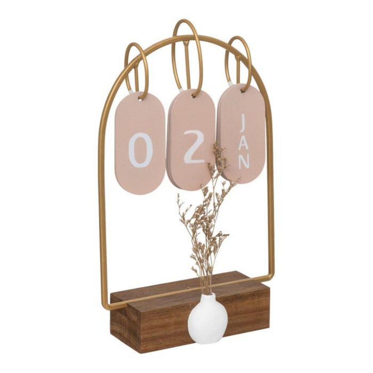 Informations Techniques : Dimensions : L. 19 x l. 7 x H. 29,5 cm Matière : Métal, MDF & Fleurs séchées Spécificités : Pratique & Tendance Calendrier déco Avec soliflore gani Sur socle en bois Poids : 0,64 kg Couleur : Multicolore
