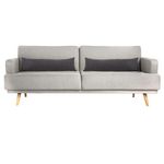 Vous aimeriez disposer d'un canapé banquette convertible chaleureux ? Le canapé banquette convertible 3 places Jack Atmosphera possède des atouts certains. Trois personnes pourront profiter sur ce canapé banquette convertible. Sa mousse polyuréthane assure une assise ou un sommeil en tout confort. Avec ses dimensions généreuses et son style élégant, c'est un canapé tout trouvé pour créer une ambiance cosy. Vous noterez également ses jolis pieds en hêtre qui allègent sa silhouette. Le canapé banquette convertible 3 places Jack servira de couchage d'appoint, tout en décorant votre salon. Ses formes simples s'intégreront naturellement dans votre espace en apportant une touche moderne. Les coussins d'ornement fournis ajoutent encore un peu de moelleux à ce canapé que vous ne voudrez plus quitter.