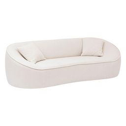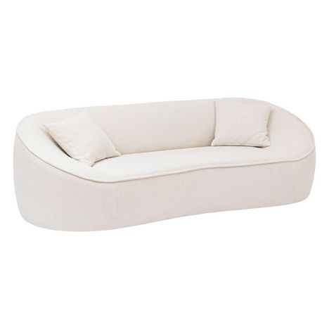 Fabriqué en France, ce canapé de forme organique accueillera volontiers jusqu'à trois personnes. Ses courbes arrondies et son revêtement en bouclette seront idéaux pour profiter de moments de repos. De plus, deux coussins apportent un confort supplémentaire à l'ensemble. Le canapé Ostuni se mariera
