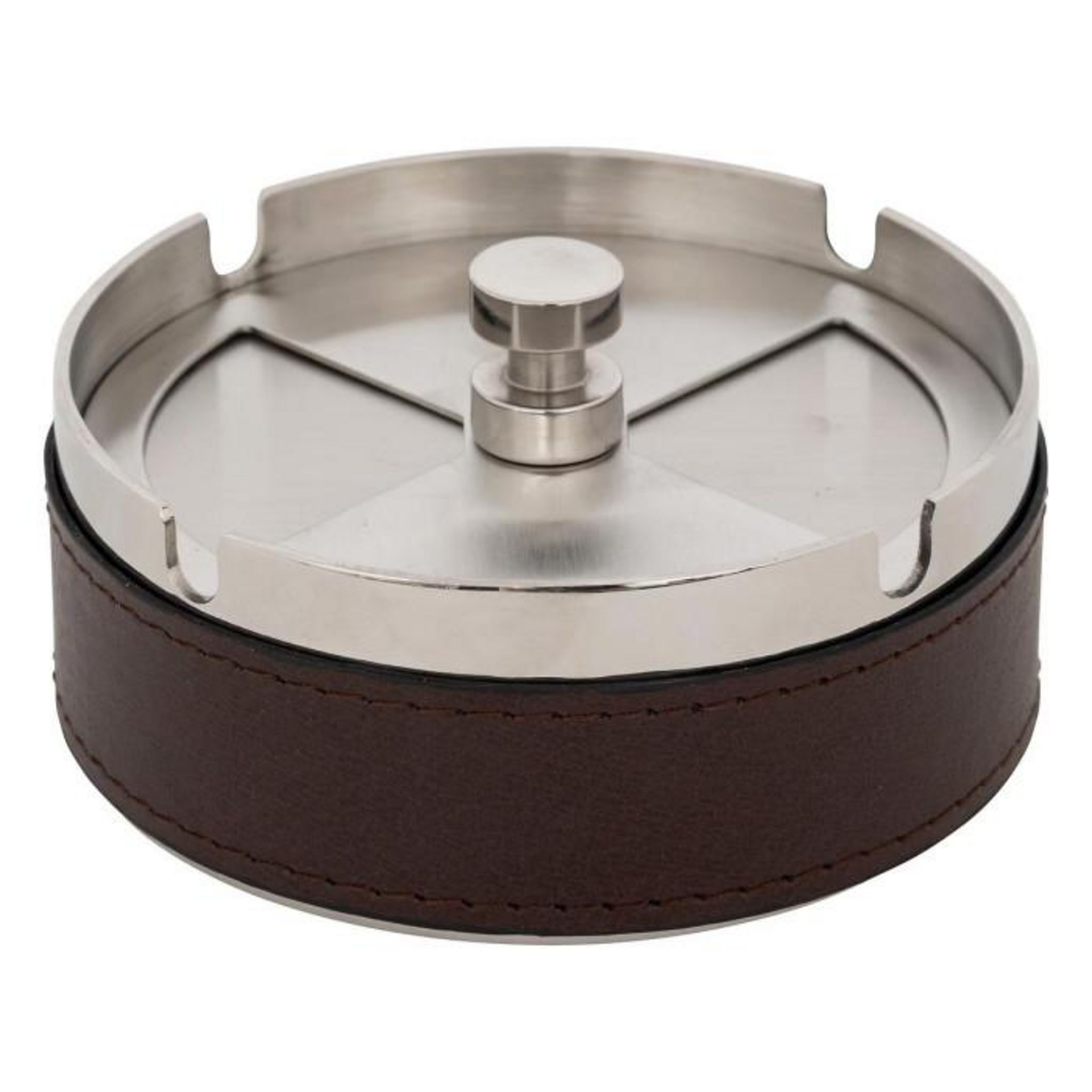 Informations Techniques : Dimensions : D. 10 x H. 4 cm Matières : Acier Inoxydable & PVC Spécificités : Pratique & Utile Cendrier rond Poids : 0,43 kg Couleur : Marron